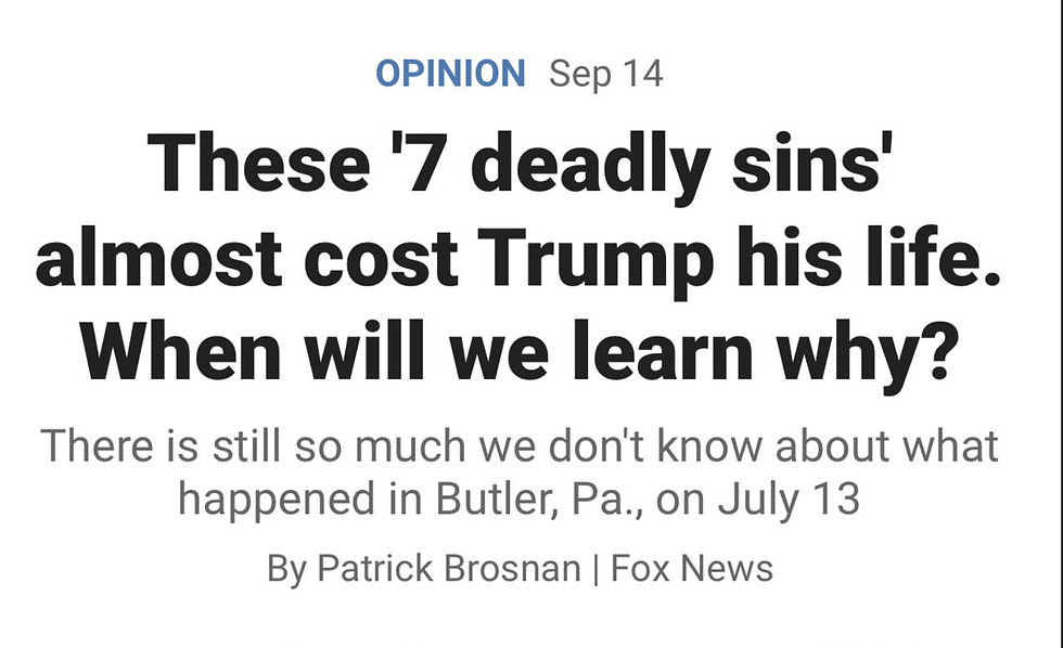 Based on public testimony, sworn statements and time/date-stamped text messages, I have learned that there were many rudimentary and significant gaps in coordination, communication, and planning by the Secret Service and the local police. These are failures that must be rectified before it is too late. I have identified, assessed and correlated these failures. I’ve put together a list of what I call the "seven deadly sins" of July 13: